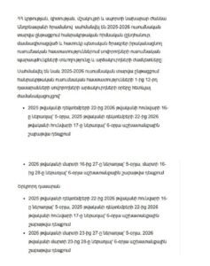 Գարնանային արձակուրդի օրերը և տևողությունը հայտնի է