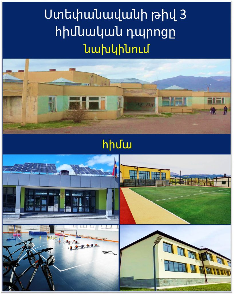 ՀՀ վարչապետի աշխատակազմի ղեկավարի տեղակալ Տարոն Չախոյանը «Ֆեյսբուք»-ի իր էջում լուսանկարներ է հրապարակել Ստեփանավանի թիվ 3 հիմնական դպրոցի նախկին ու ներկա տեսքից: