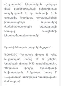 Լույս չի լինելու հունվարի 8-ին, 9-ին, 12/14/15/16-ին