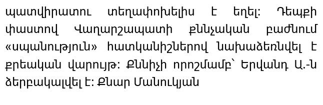 of the facts presented, he admitted that he was involved in the death of Armine A. when he transported her as a client in a Renault car. Criminal proceedings were initiated in the case under the article “murder”, and by decision of the investigator, Erund A. was detained. Author: Knar Manukyan