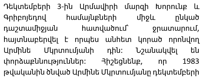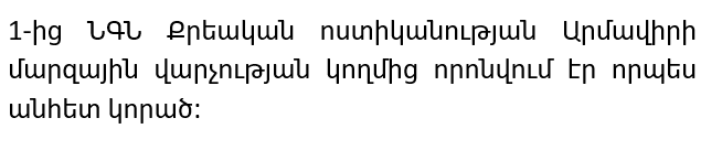 like a missing person. Expertise has been ordered. Let us remind you that Armine Mkrtumyan, born in 1983, has been wanted as missing since December 1