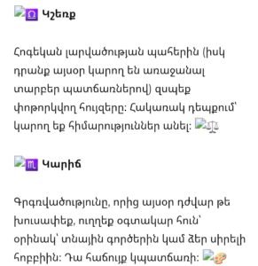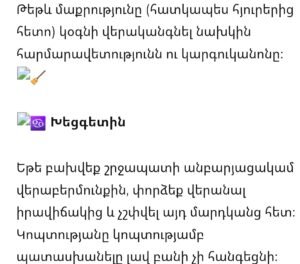 Ցանկալի չէ աղմկել, բարձրացնել ձայնը կամ կտրուկ շարժումներ անել։ Ոչ ոքի չարիք մի՛ ցանկացեք, քանի որ դա վատ կանդրադառնա ոչ միայն ձեր հոգեվիճակի, այլև ընդհանուր կյանքի վրա։