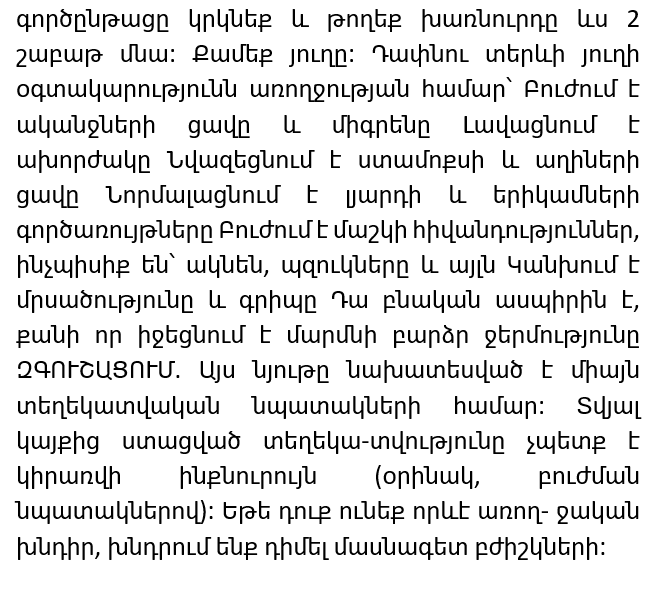 Considered a natural remedy to help reduce fever WARNING: This information is for informational purposes only. These recommendations cannot be used for self-treatment. If you have any health problems, be sure to consult a doctor.