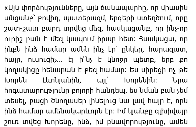 I realized that he was everything to me: a friend, a loved one, a father, a teacher… What else does a woman need if her husband is a support? I fell in love not with Khoren Levonyan, but with Khoren. His care for everyone — I have never seen anything like this. Besides the fact that he is respectful to his
