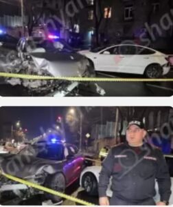 Երեկ՝ մարտի 15-ին, խոշոր ու շղթայական ավտովթար է տեղի ունեցել Երևանում։ Ժամը 22:25-ի սահմաններում Բաղրամյան պողոտայում՝ ՀՀ նախագահի նստավայրի հարևանությամբ բախվել են 21-ամյա Արսեն Բարսեղյանի վարած «Tesla» մակնիշի, 29-ամյա Ալեքսան Ջուլհակյանի վարած «Toyota» մակնիշի, Արմավիրի մարզի բնակիչ 33-ամյա Էջմին Քեշիշիի վարած «Tesla» մակնիշի և 20-ամյա Ռուբեն Միրզոյանի վարած «Zeekr» մակնիշի ավտոմեքենաները։Ինչպես դեպքի վայրից հայտնում է ֆոտոլրագրող Գագիկ Շամշյանը, վթարի հետևանքով Ռ. Միրզոյանը բուժօգնություն ստանալու նպատակով դիմել է «Նաիրի» բժշկական կենտրոն, իսկ նրա ուղևորներ 19-ամյա Էմիլ Կիրակոսյանն ու 22-ամյա Արամ Եդիգարյանը տեղափոխվել են Հերացու անվան թիվ 1 համալսարանական հիվանդանոց։Վիրավորներին առաջինն օգնության են հասել քաղաքացիները և ըստ քաղաքացիների հայտնածի օպերատիվորեն ժամանած Երևանի 103 շտապօգնության բժիշկների հերթապահ խմբերը։Բժիշկները վիրավորներին մինչև հիվանդանոց տեղափոխելը տեղում առաջին բուժօգնություն են ցուցաբերել։Դեպքի վայր են ժամանել ՀՀ ՆԳՆ ոստիկանության պարեկային ծառայության Երևան քաղաքի գնդի 2-րդ գումարտակի պարեկները՝ գնդի հրամանատար Անդրանիկ Խաչատրյանի, գնդի հրամանատարի տեղակալ Արսեն Ստեփանյանի և գումարտակի հրամանատար Գոռ Առաքելյանի գլխավորությամբ։Վթարի մասին ՊԾ Երևան քաղաքի գնդից տեղեկությունը փոխանցել են ՀՀ Քննչական կոմիտեի Երևան քաղաքի քննչական վարչության ճանապարհատրանսպորտային հանցագործությունների քննության բաժին, որտեղից ժամանել է քննչական խումբը՝ բաժնի պետի տեղակալներ Արթուր Ադամյանի, Գրիգոր Ավետիսյանի և ավագ քննիչ Մակար Միրզոյանի գլխավորությամբ։Վթարի փաստով քննչական բաժնում նախաձեռնվել է քրեական վարույթ, որտեղ էլ պարզում են վարորդների և վիրավորների ամբողջական տվյալները և ավտոմեքենաների սեփականատերերի ինքնությունը։Քննիչի հանձնարարականով ավտոմեքենաները տեղափոխվել են ՊԾ Երևան քաղաքի գնդի պահպանվող հատուկ տարածք։Ֆոտոլրագրողը հայտնում է, որ մինչ ավտոմեքենաների բախումը դրանցից մեկը դուրս է եկել երթևեկելի գոտուց, բախվել բազալտե եզրաքարերին, կոտրել այն, առաջ ընթացել, բախվել մի քանի ծառերի, որոնցից մեկը կոտրել է, և հայտնվել ճանապարհի երթևեկելի գոտում։ Հարվածի հետևանքով «Zeekr»-ի առջևի անվահեծաններից մեկը կոտրվել է։Լուսանկարները և տեսանյութը՝ Գագիկ Շամշյանի