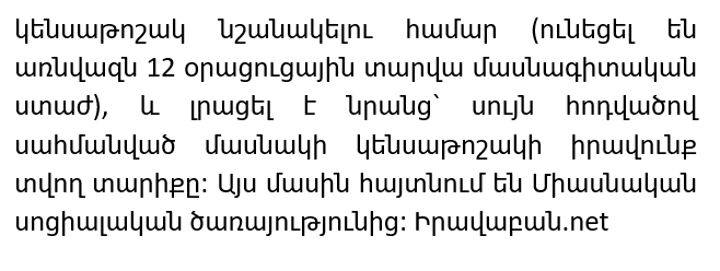 and have reached the age established by this article, which gives the right to a partial pension. The Unified Social Service reports this. Source: Iravaban.net