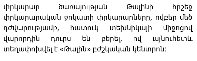 Talina, the Ministry of Internal Affairs of the Republic of Armenia was the first to come to the aid of the truck driver. Using special equipment, they were able to remove him from the cabin,