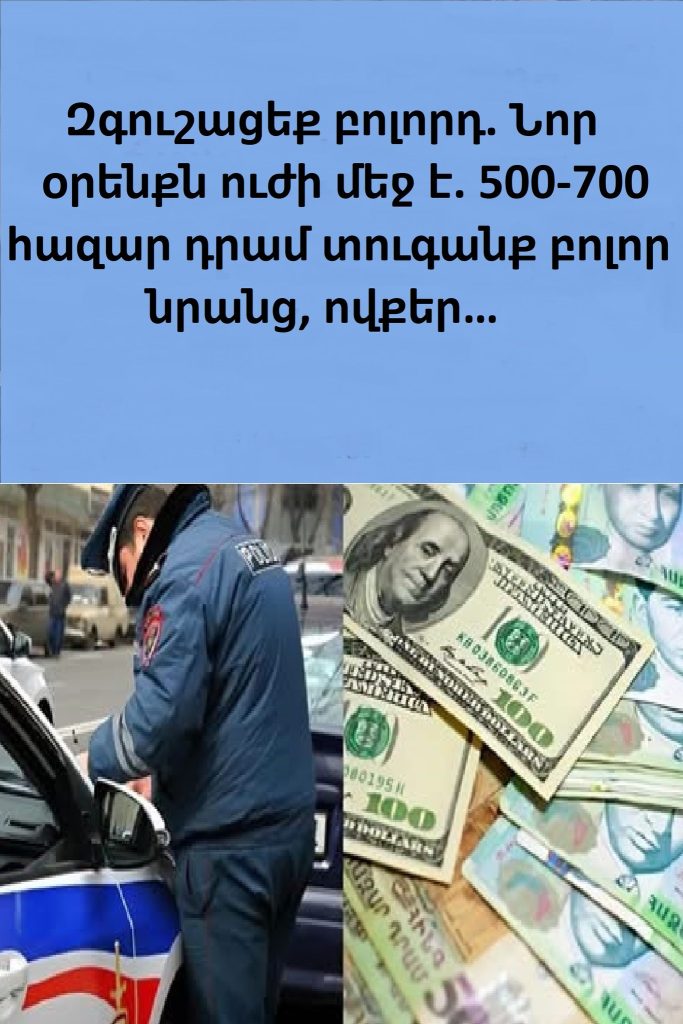 Զգուշացեք բոլորդ․ Նոր օրենքն ուժի մեջ է․ 500-700 հազար դրամ տուգանք բոլոր նրանց, ովքեր…